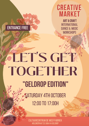 El sábado 4 de octubre, de 12:00 a 17:00, el corazón de Geldrop, en el auditorio Weeffabriek, cobrará vida con el mercado creativo Let’s Get Together.